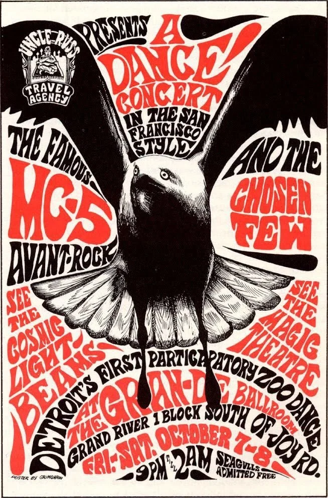 Gary Grimshaw came out of 1960s Detroit with a rapidograph pen and something to say. He built his career alongside the MC5, Iggy and the Stooges, and the White Panther Party. Making work that was equal parts art and ammunition. Five decades. Hundreds of posters. One of rock's most distinct visual voices.